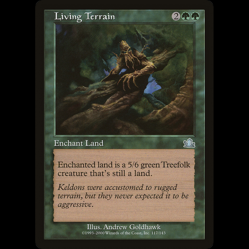 Enchanted land is a 5/6 green Treefolk creature that's still a land.