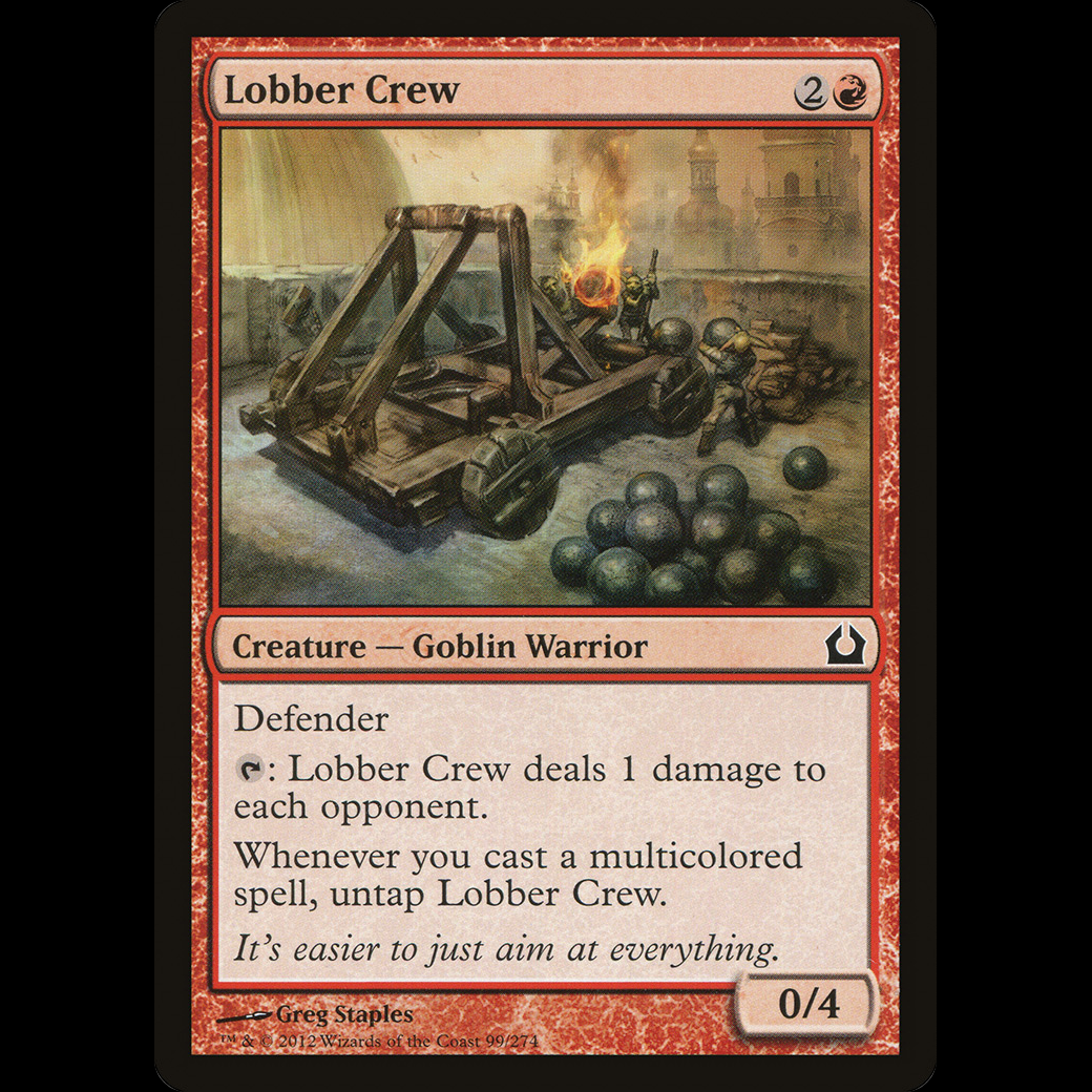 Whenever you cast a multicolored spell, untap Lobber Crew.
