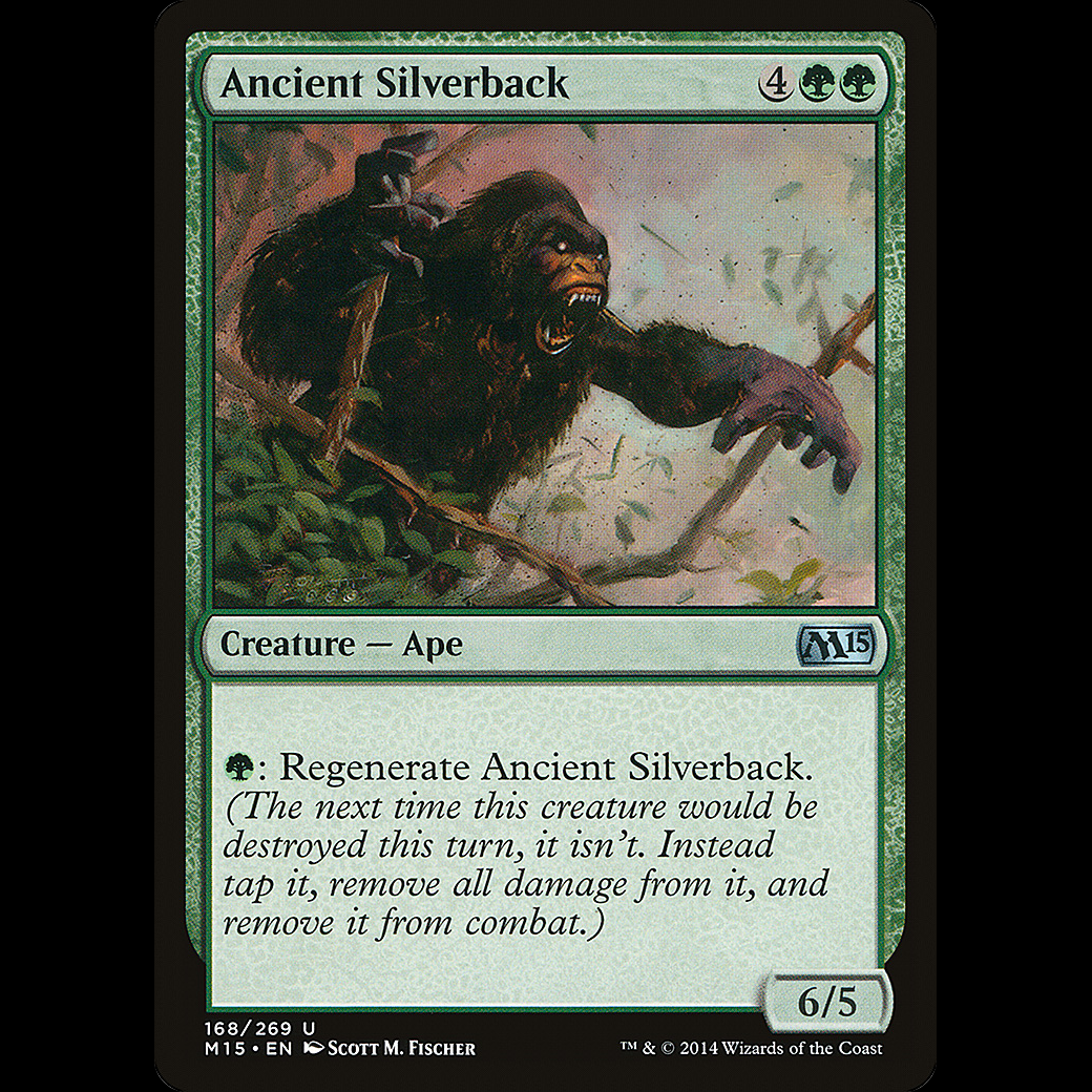 : Regenerate Ancient Silverback. (The next time this creature would be destroyed this turn, it isn't. Instead tap it, remove all damage from it, and remove it from combat.)
