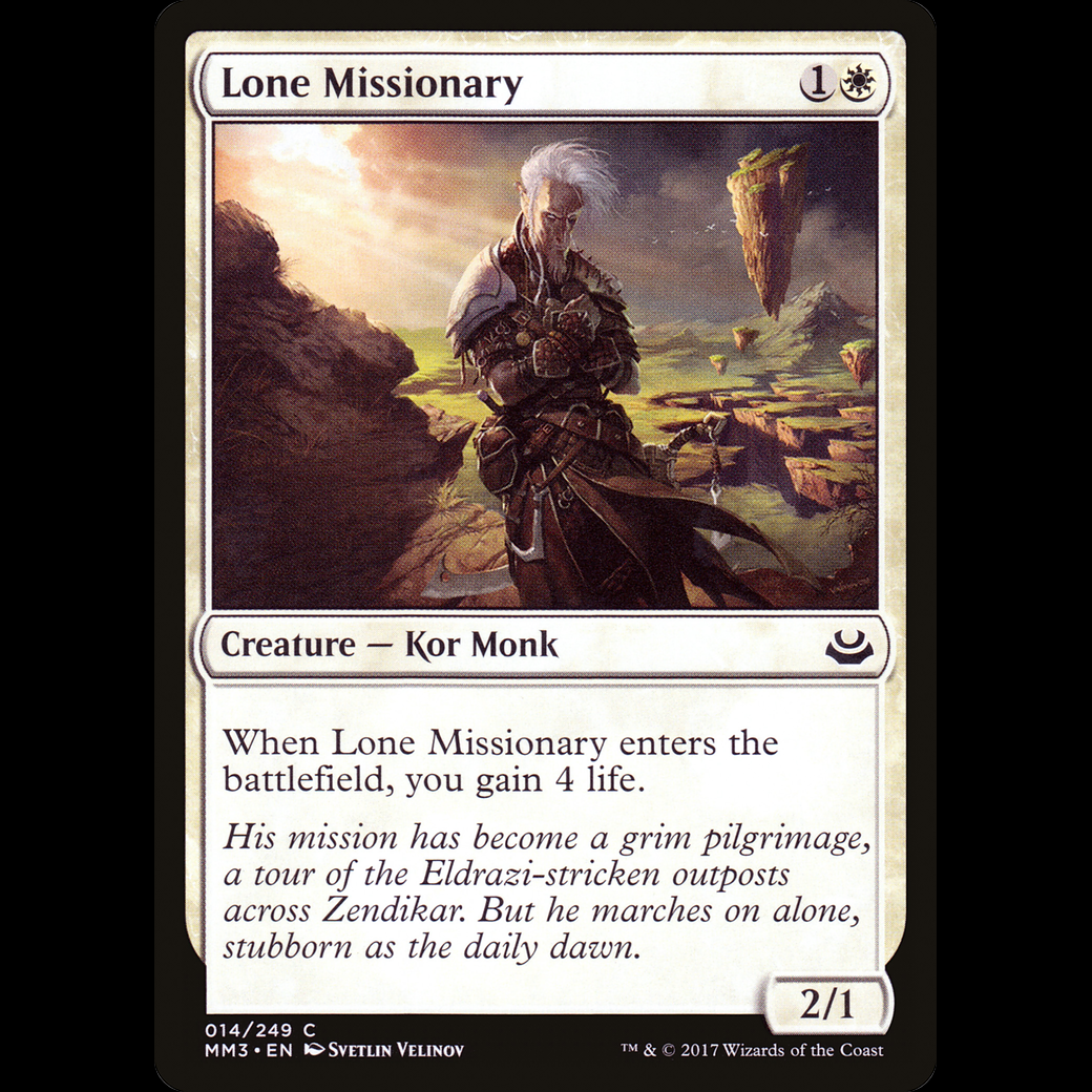 When Lone Missionary enters the battlefield, you gain 4 life.