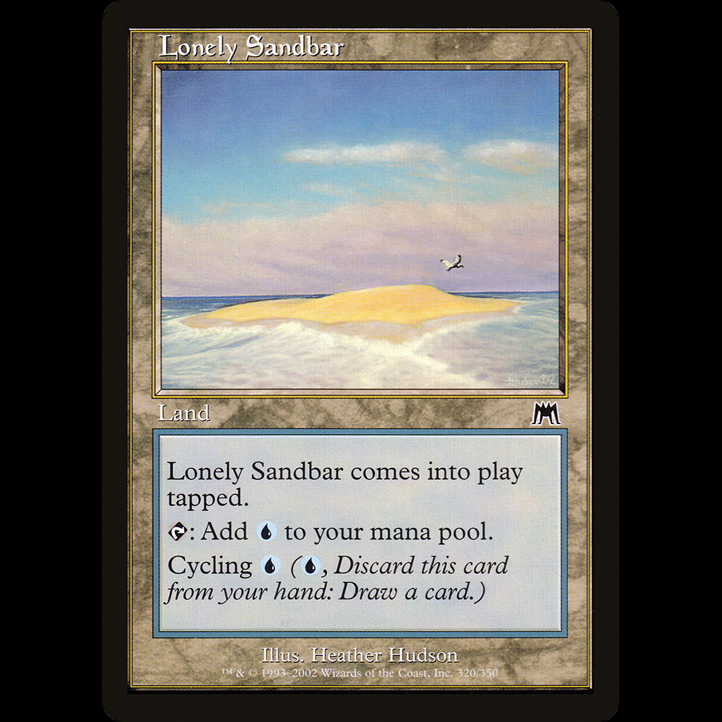 MTG Lonely Sandbar Onslaught Lonely Sandbar enters the battlefield tapped. : Add . Cycling (, Discard this card: Draw a card.)