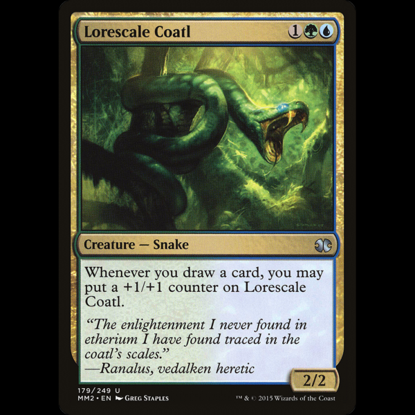 Whenever you draw a card, put a +1/+1 counter on Lorescale Coatl.