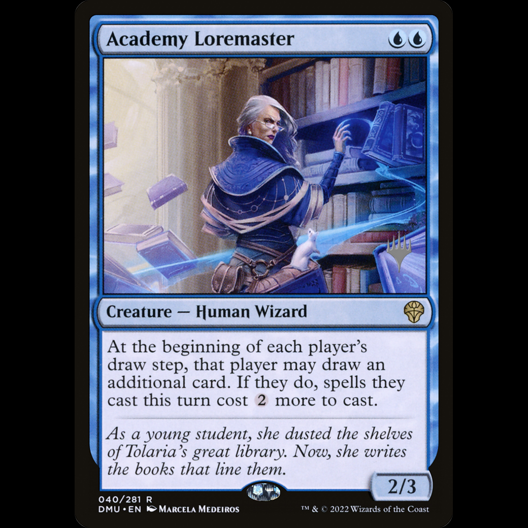 MTG Maestra sabia de la Academia (Academy Loremaster) Dominaria United Promos pdmu#40p At the beginning of each player's draw step, that player may draw an additional card. If they do, spells they cast this turn cost more to cast.