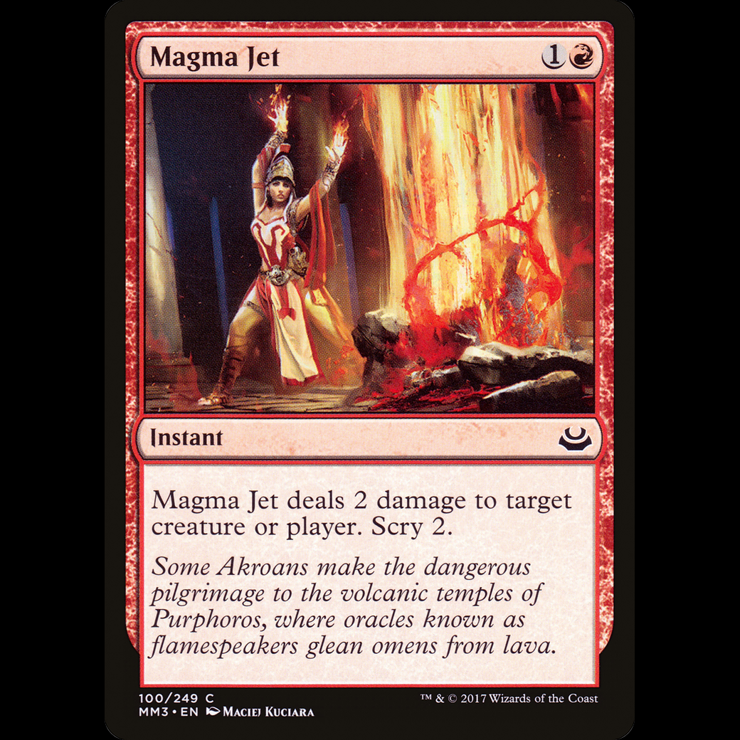 MTG Magma Jet Modern Masters 2017Magma Jet deals 2 damage to any target. Scry 2.