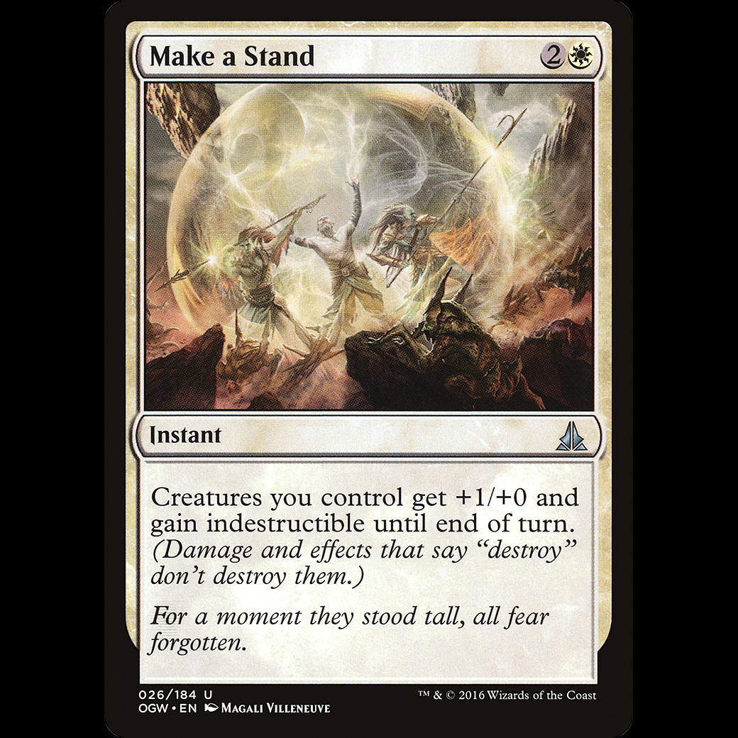 Creatures you control get +1/+0 and gain indestructible until end of turn. (Damage and effects that say
