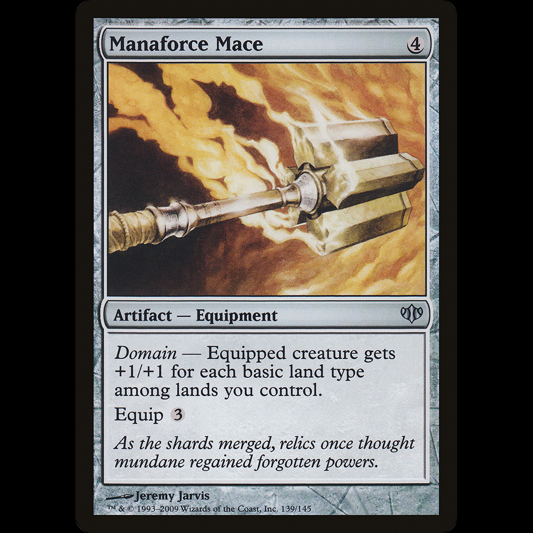Domain — Equipped creature gets +1/+1 for each basic land type among lands you control.