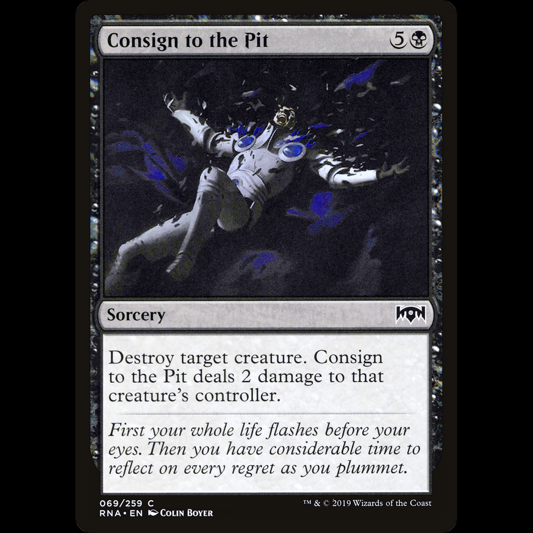 Destroy target creature. Consign to the Pit deals 2 damage to that creature's controller.