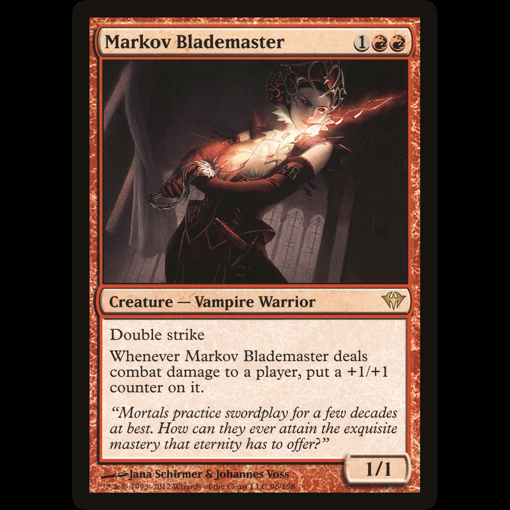 Whenever Markov Blademaster deals combat damage to a player, put a +1/+1 counter on it.