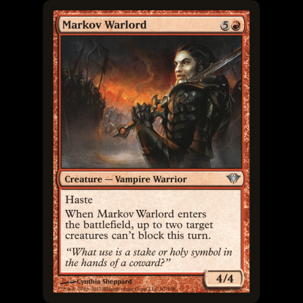 When Markov Warlord enters the battlefield, up to two target creatures can't block this turn.