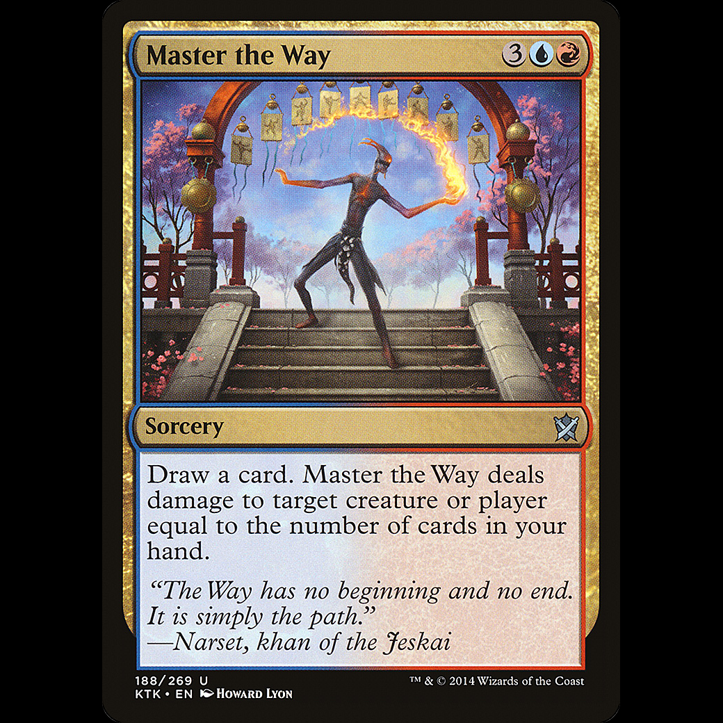 Draw a card. Master the Way deals damage to any target equal to the number of cards in your hand.
