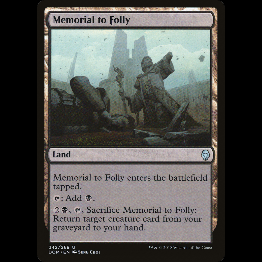 , , Sacrifice Memorial to Folly: Return target creature card from your graveyard to your hand.