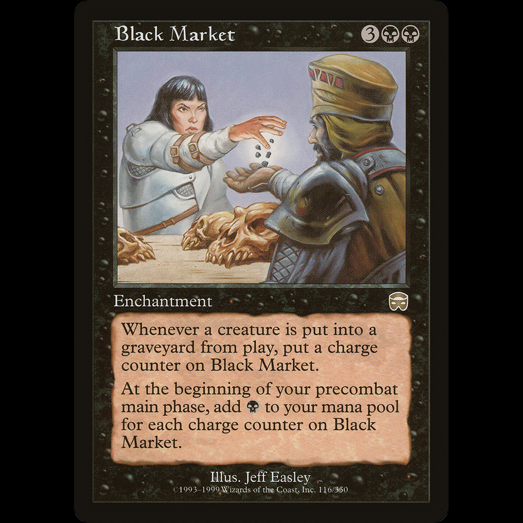 At the beginning of your precombat main phase, add for each charge counter on Black Market.