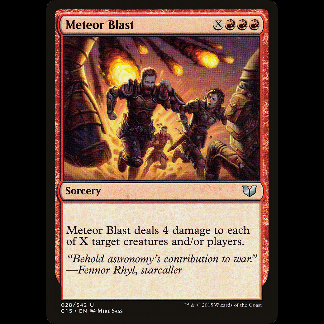 MTG Meteor Blast Commander 2015 c15#28Meteor Blast deals 4 damage to each of X targets.