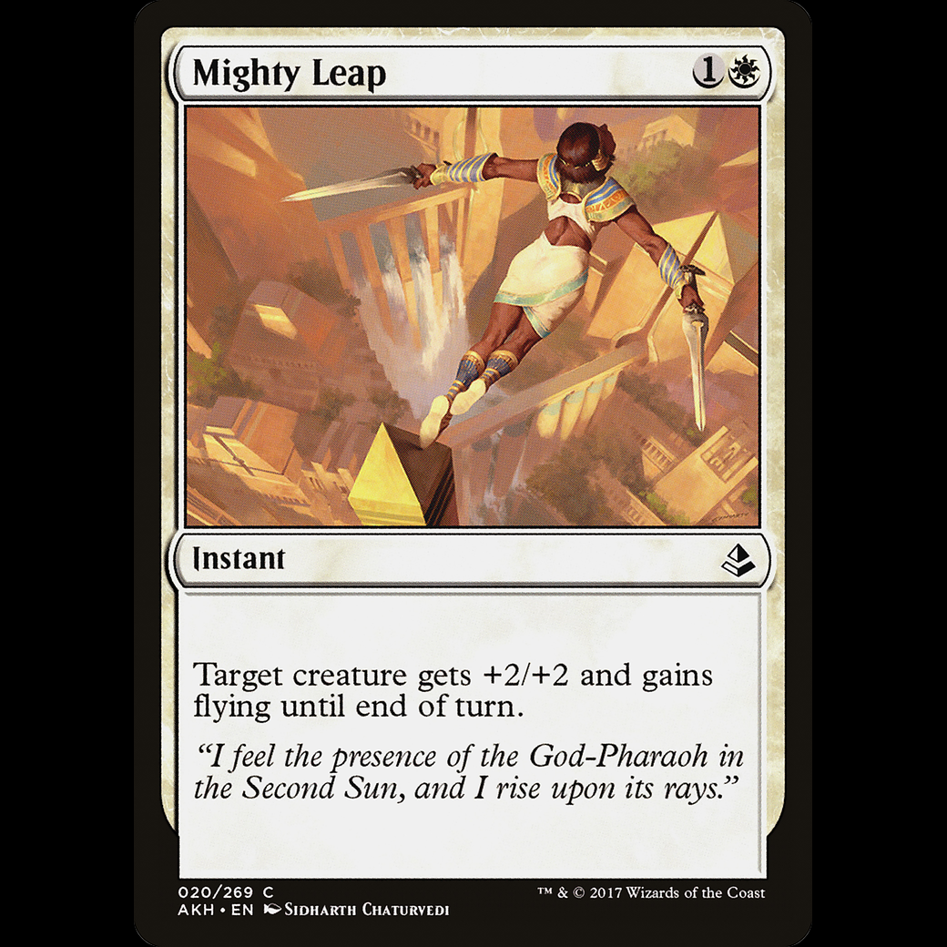MTG Mighty Leap AmonkhetTarget creature gets +2/+2 and gains flying until end of turn.