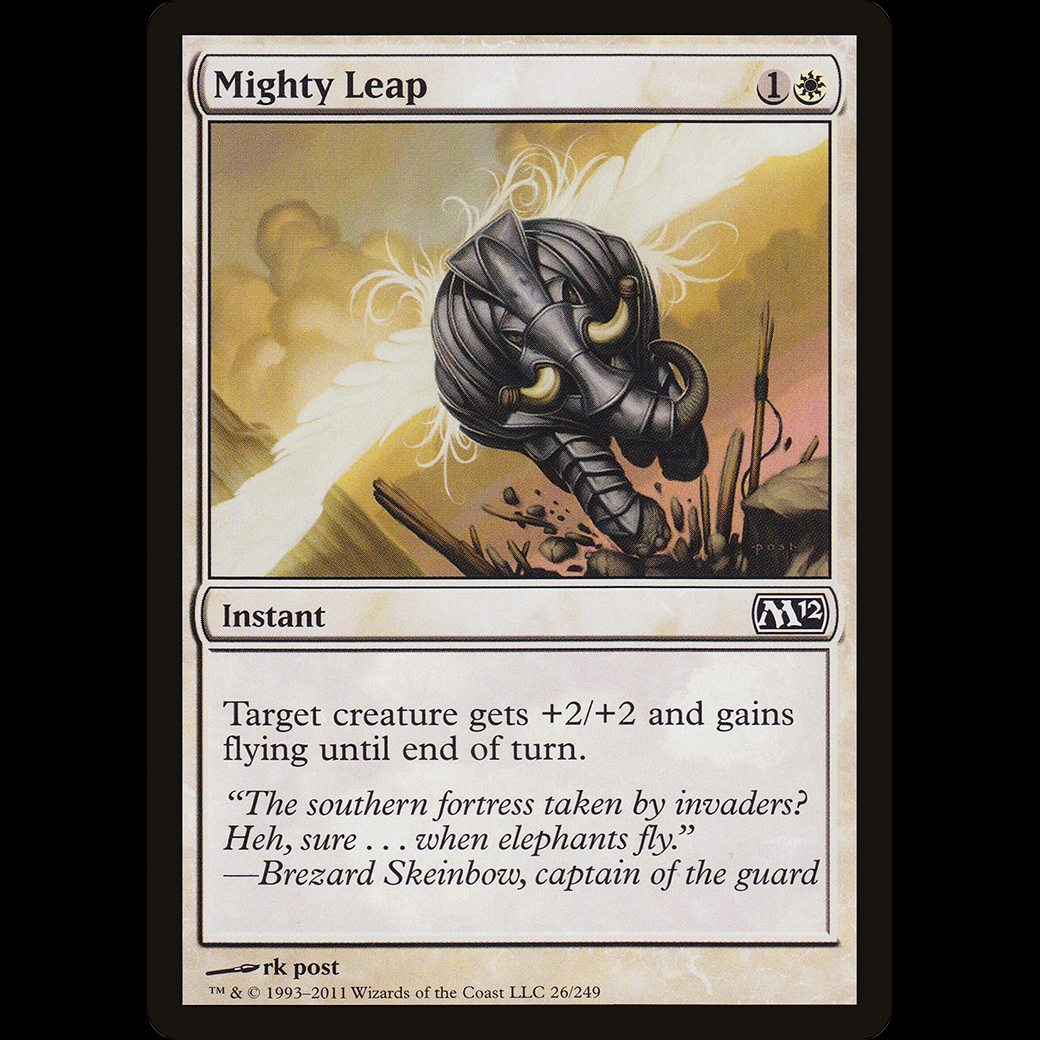 MTG Mighty Leap Magic 2012Target creature gets +2/+2 and gains flying until end of turn.