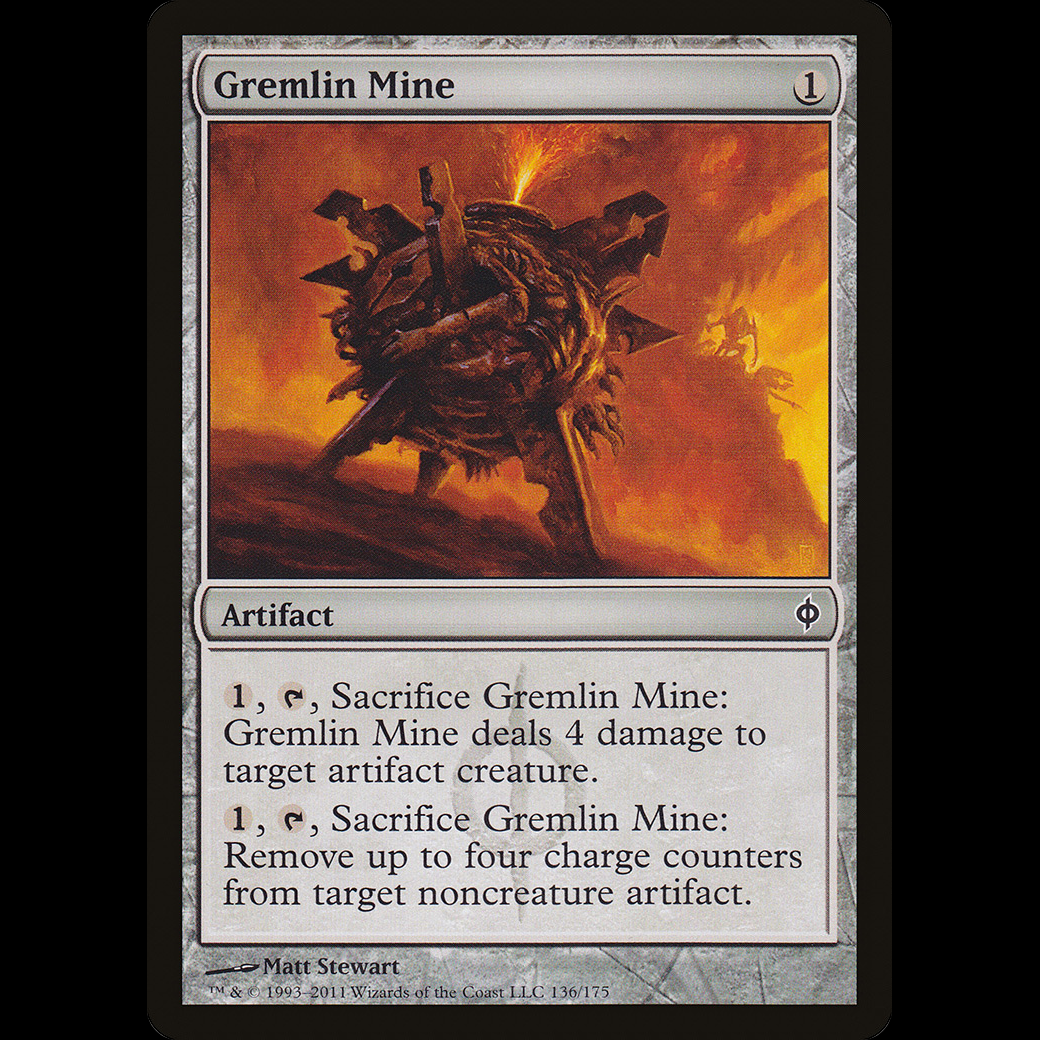 , , Sacrifice Gremlin Mine: Remove up to four charge counters from target noncreature artifact.