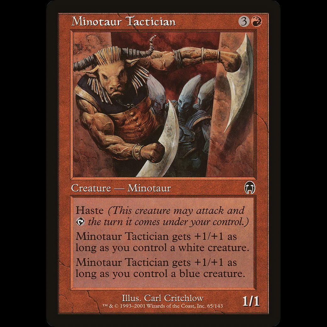 Minotaur Tactician gets +1/+1 as long as you control a white creature.