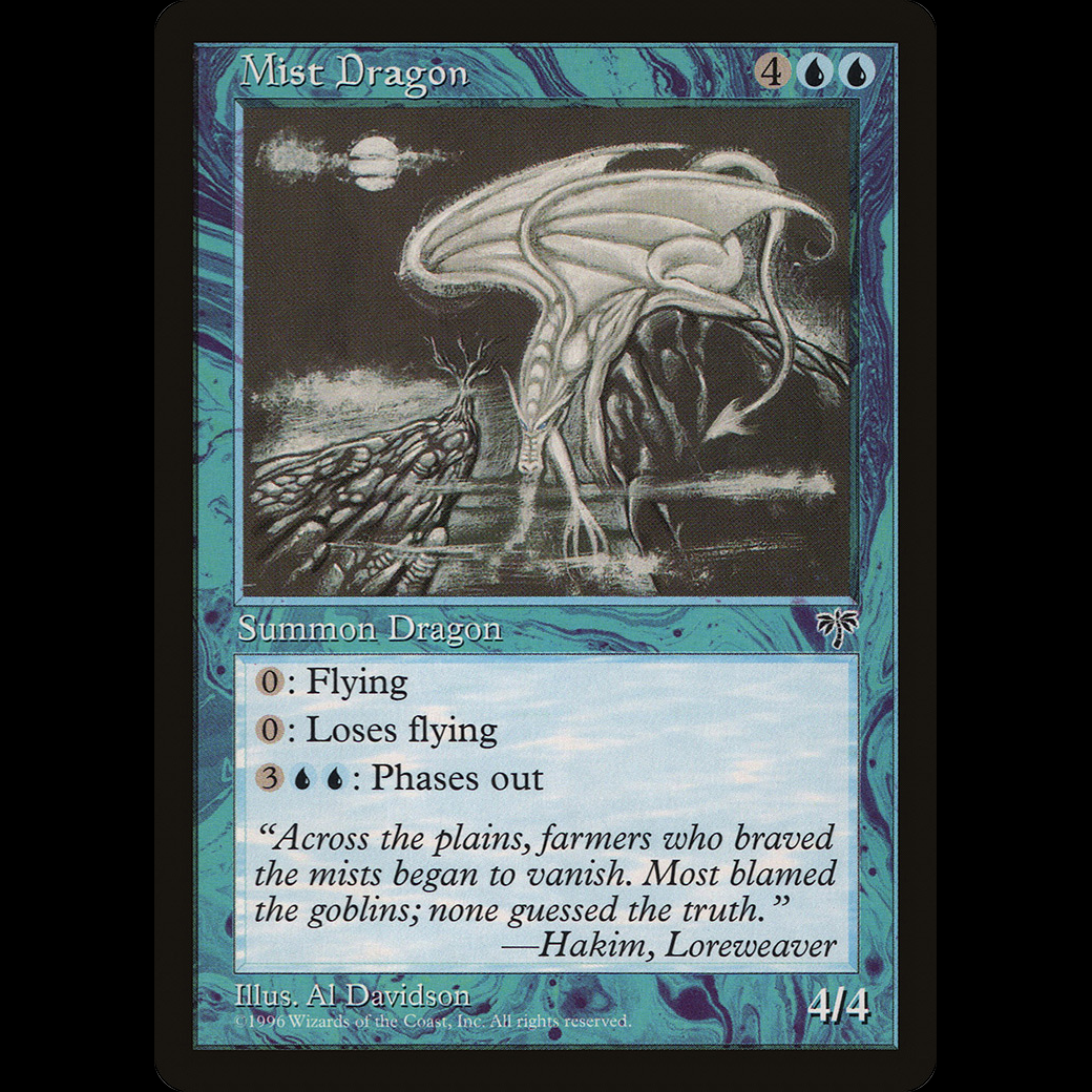 : Mist Dragon phases out. (While it's phased out, it's treated as though it doesn't exist. It phases in before you untap during your next untap step.)