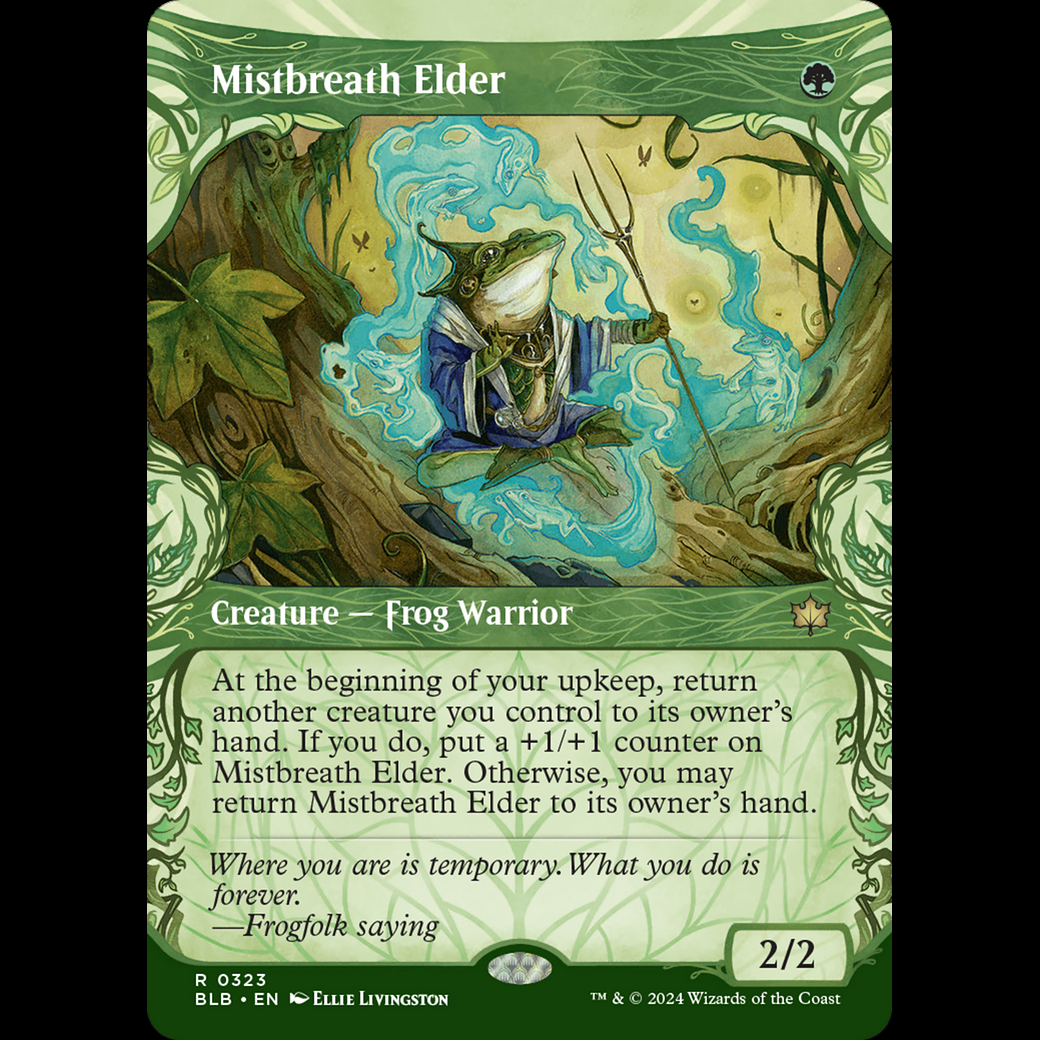At the beginning of your upkeep, return another creature you control to its owner's hand. If you do, put a +1/+1 counter on Mistbreath Elder. Otherwise, you may return Mistbreath Elder to its owner's hand.