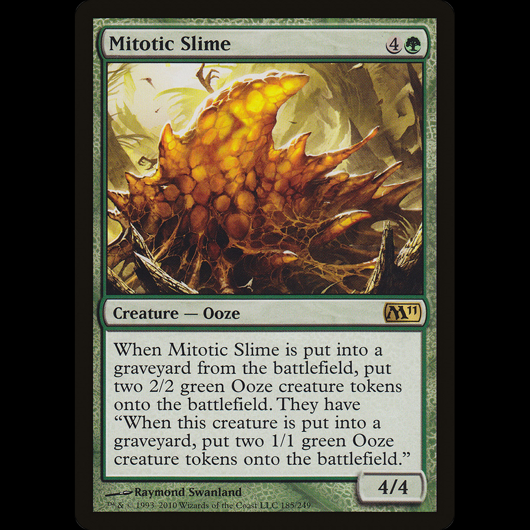 When Mitotic Slime dies, create two 2/2 green Ooze creature tokens. They have