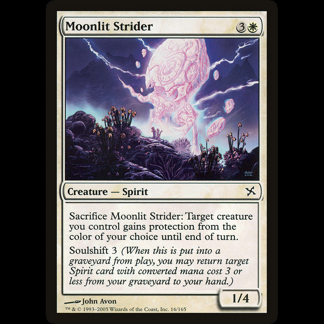 Sacrifice Moonlit Strider: Target creature you control gains protection from the color of your choice until end of turn.