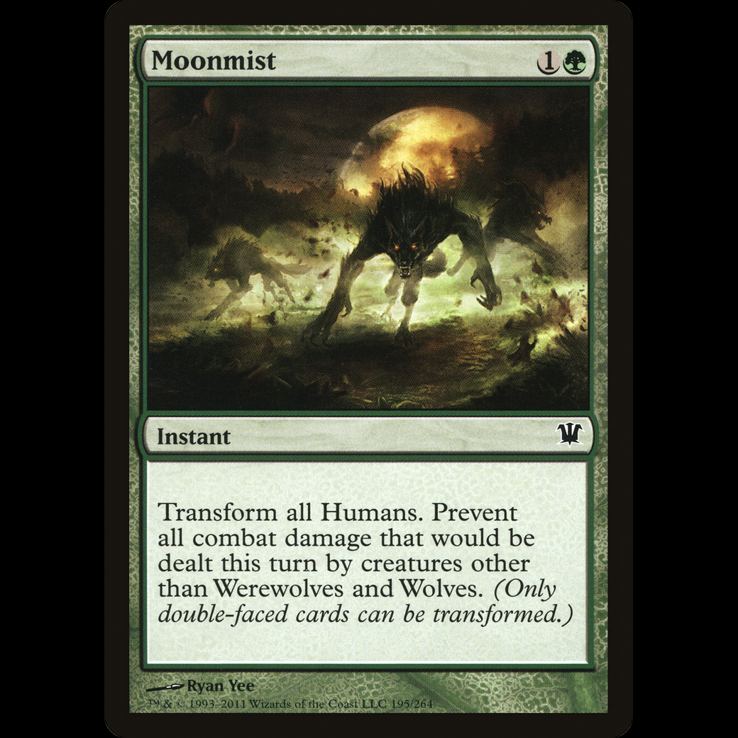 Transform all Humans. Prevent all combat damage that would be dealt this turn by creatures other than Werewolves and Wolves. (Only double-faced cards can be transformed.)