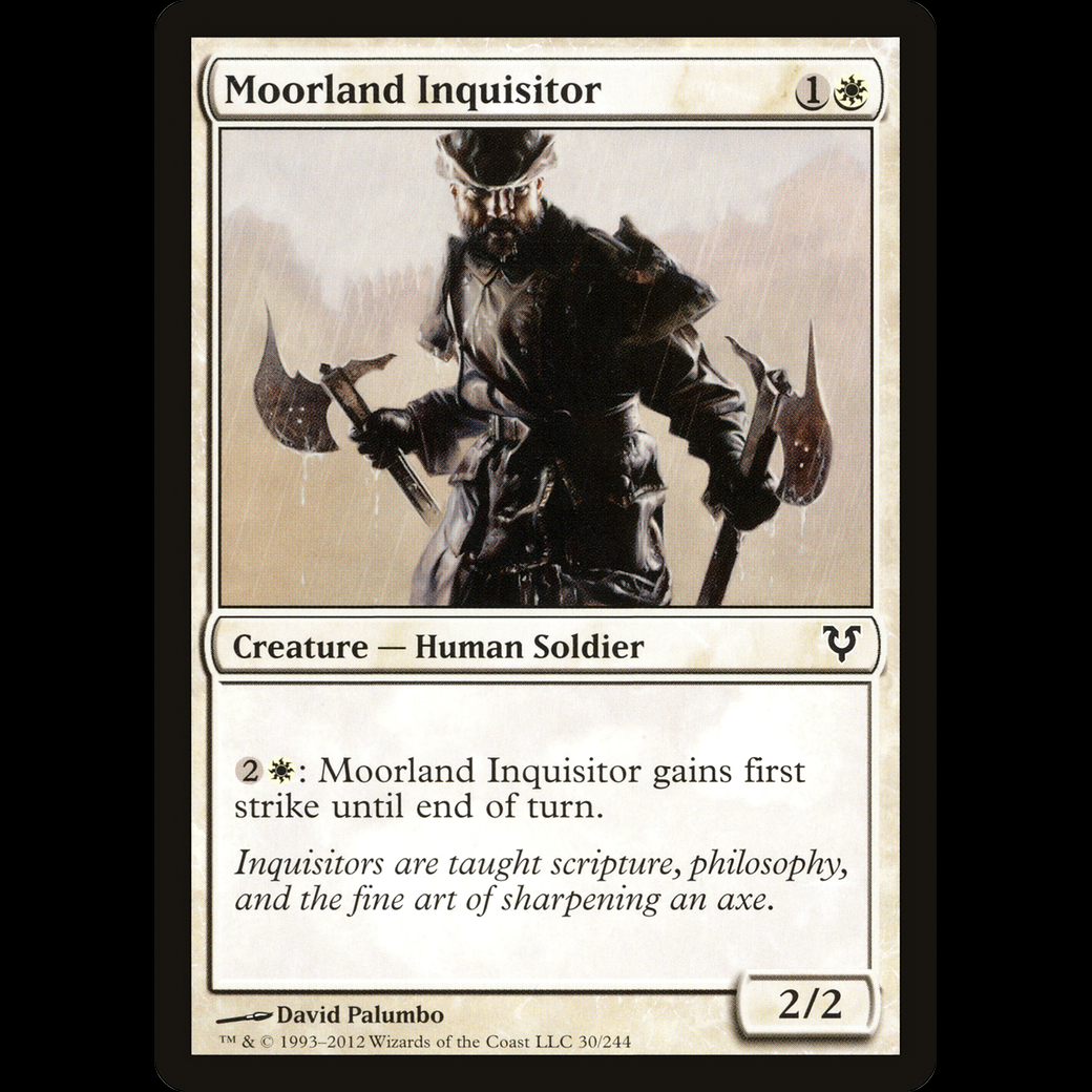 : Moorland Inquisitor gains first strike until end of turn. (It deals combat damage before creatures without first strike.)