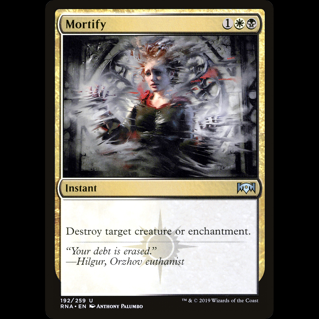 MTG Mortify Ravnica Allegiance rna#192Destroy target creature or enchantment.