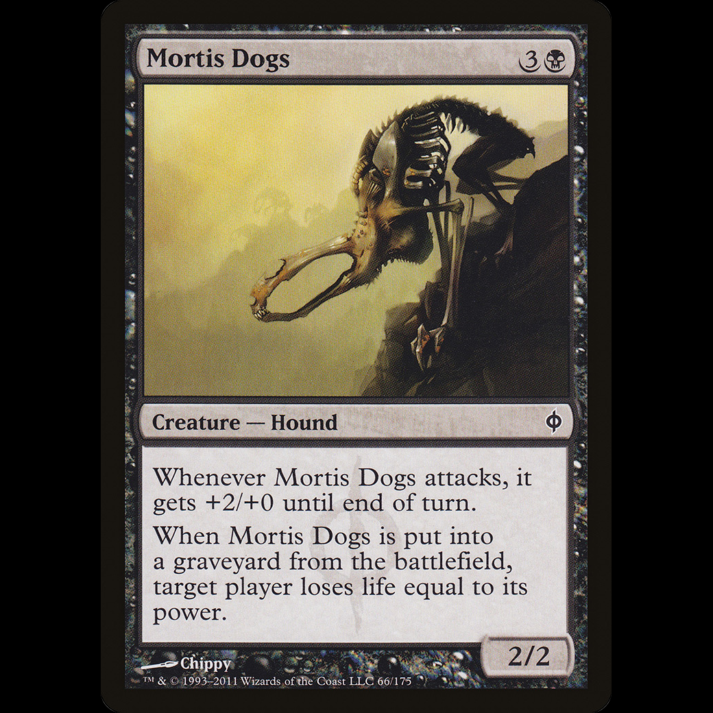 Whenever Mortis Dogs attacks, it gets +2/+0 until end of turn.