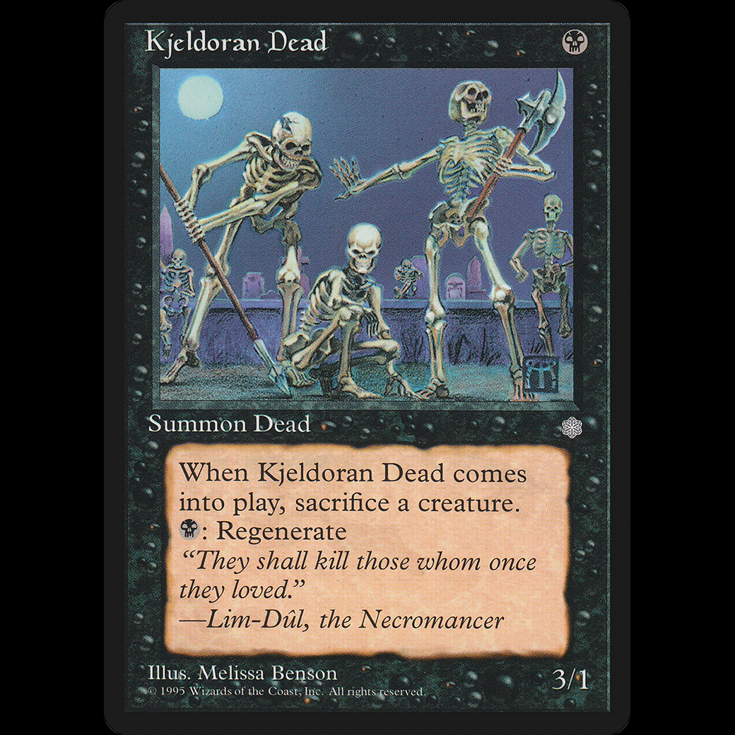 When Kjeldoran Dead enters the battlefield, sacrifice a creature.