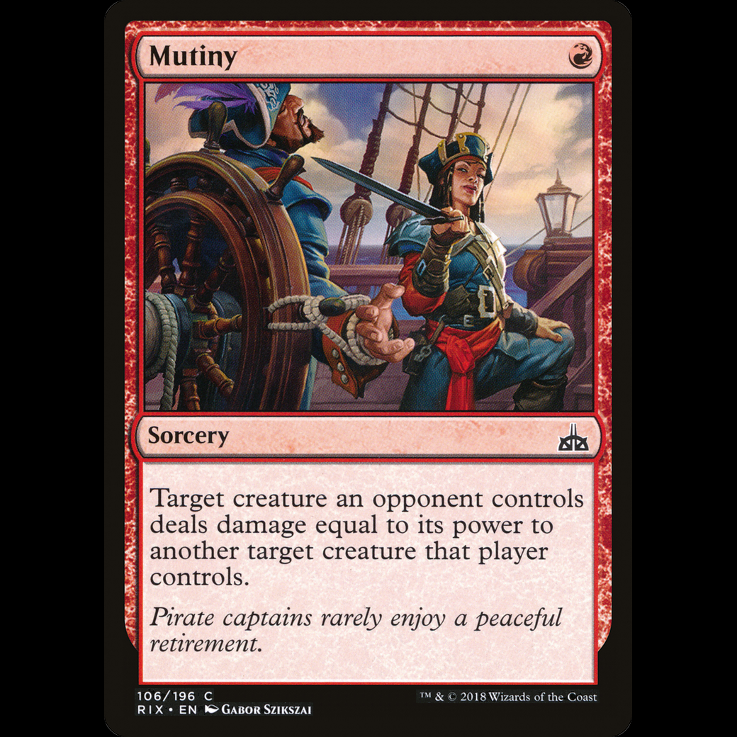 Target creature an opponent controls deals damage equal to its power to another target creature that player controls.