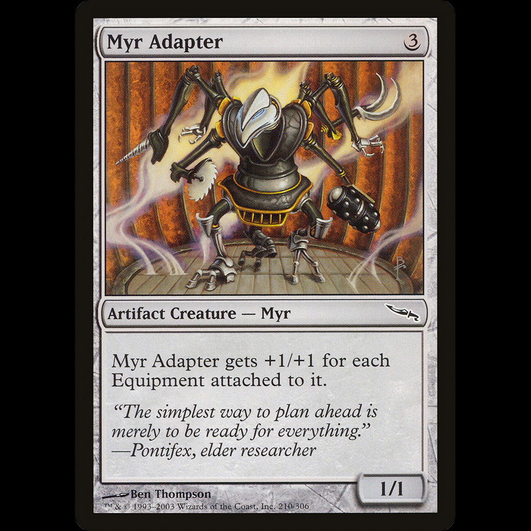 MTG Myr Adapter MirrodinMyr Adapter gets +1/+1 for each Equipment attached to it.