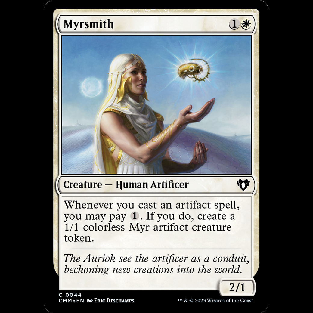 Whenever you cast an artifact spell, you may pay . If you do, create a 1/1 colorless Myr artifact creature token.