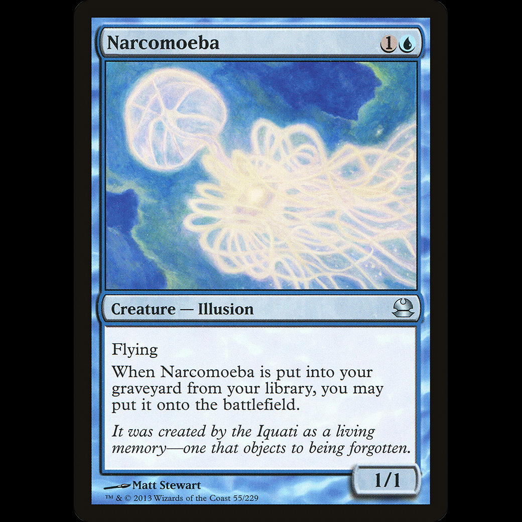 When Narcomoeba is put into your graveyard from your library, you may put it onto the battlefield.