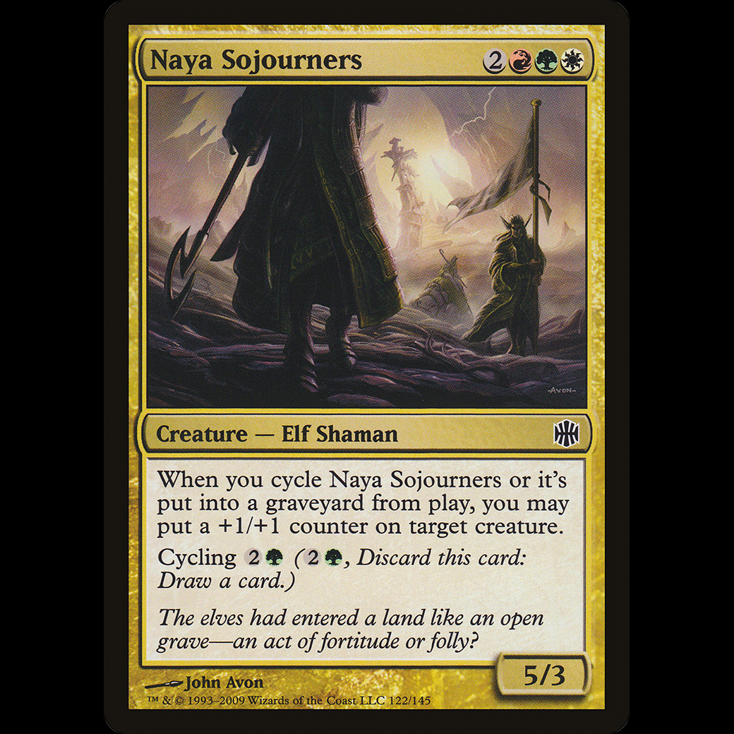 When you cycle Naya Sojourners or it dies, you may put a +1/+1 counter on target creature.