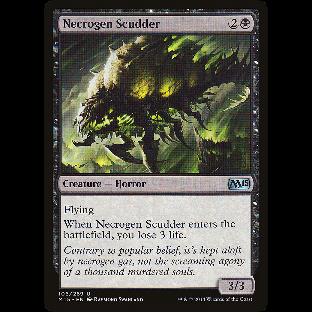 When Necrogen Scudder enters the battlefield, you lose 3 life.