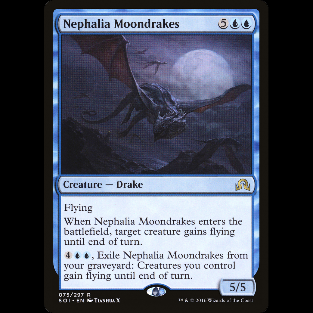 When Nephalia Moondrakes enters the battlefield, target creature gains flying until end of turn.
