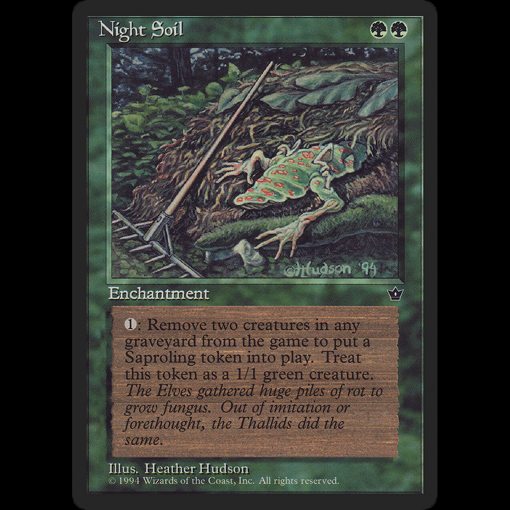 , Exile two creature cards from a single graveyard: Create a 1/1 green Saproling creature token.