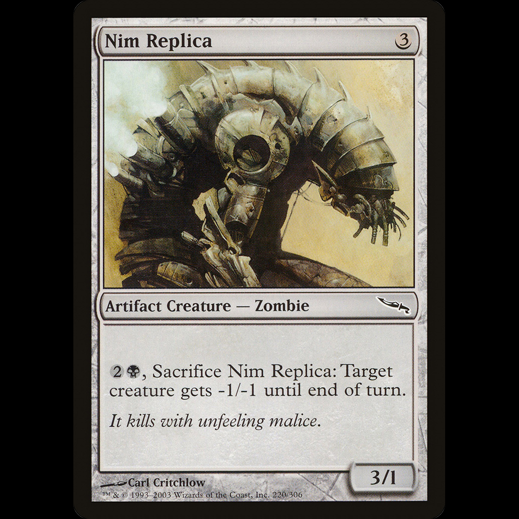 , Sacrifice Nim Replica: Target creature gets -1/-1 until end of turn.