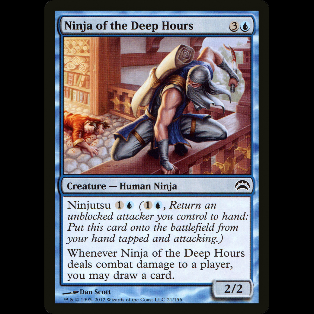 Whenever Ninja of the Deep Hours deals combat damage to a player, you may draw a card.