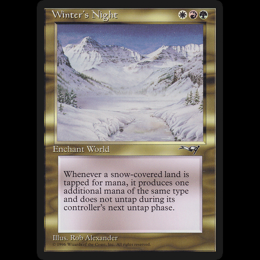 Whenever a player taps a snow land for mana, that player adds one mana of any type that land produced. That land doesn't untap during its controller's next untap step.