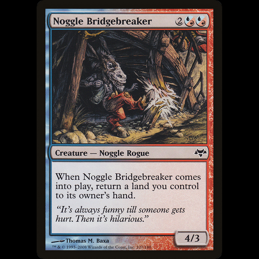 When Noggle Bridgebreaker enters the battlefield, return a land you control to its owner's hand.