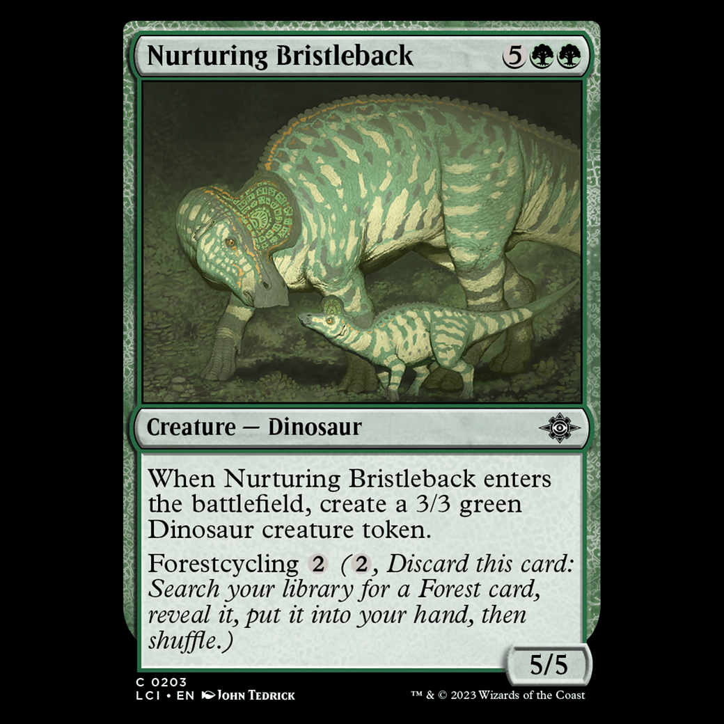 When Nurturing Bristleback enters the battlefield, create a 3/3 green Dinosaur creature token.