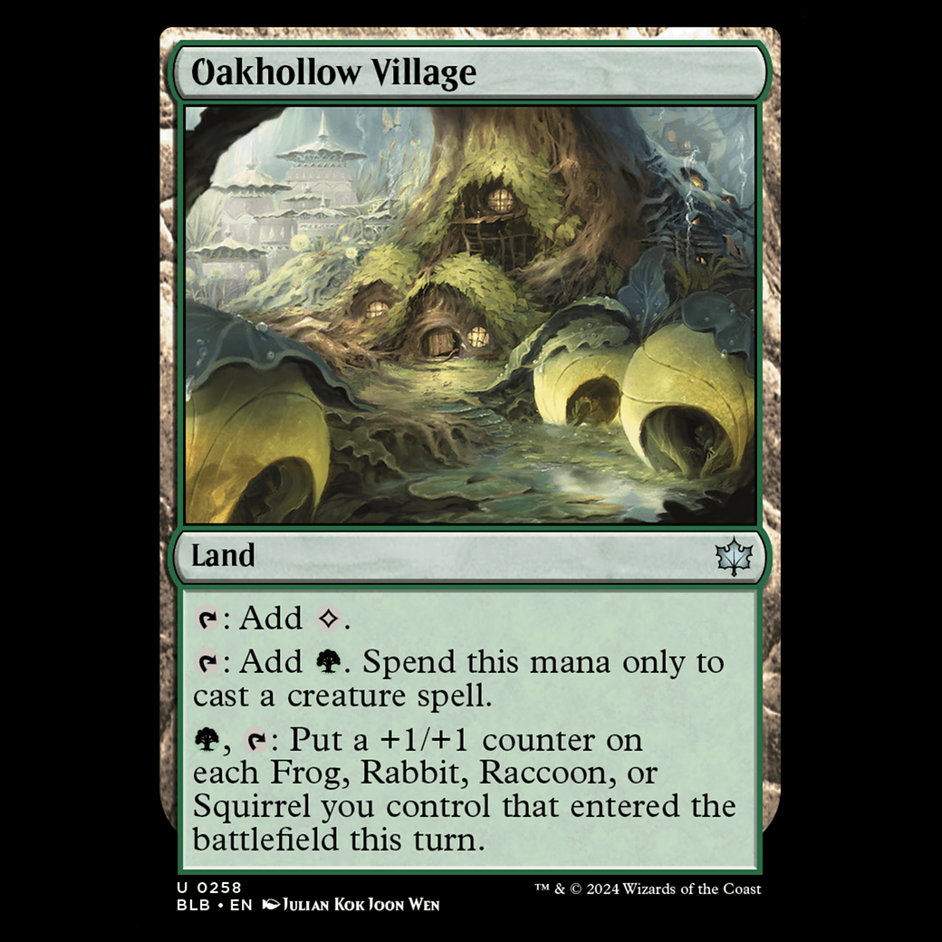 , : Put a +1/+1 counter on each Frog, Rabbit, Raccoon, or Squirrel you control that entered the battlefield this turn.