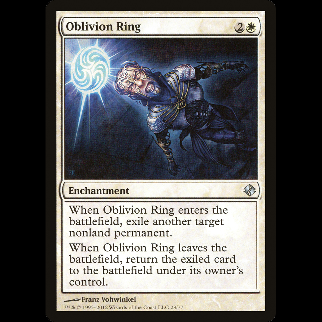 When Oblivion Ring enters the battlefield, exile another target nonland permanent.