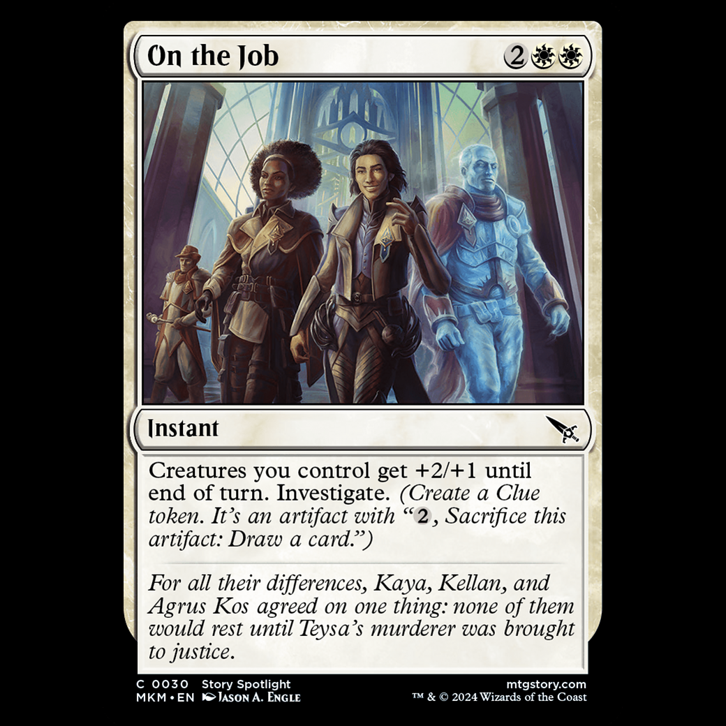 Creatures you control get +2/+1 until end of turn. Investigate. (Create a Clue token. It's an artifact with ", Sacrifice this artifact: Draw a card.")