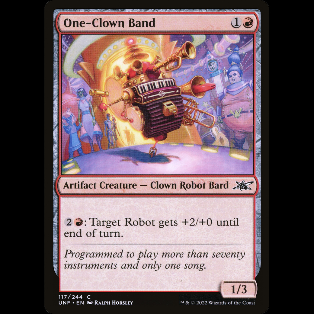 MTG One-Clown Band Unfinity unf#117: Target Robot gets +2/+0 until end of turn.