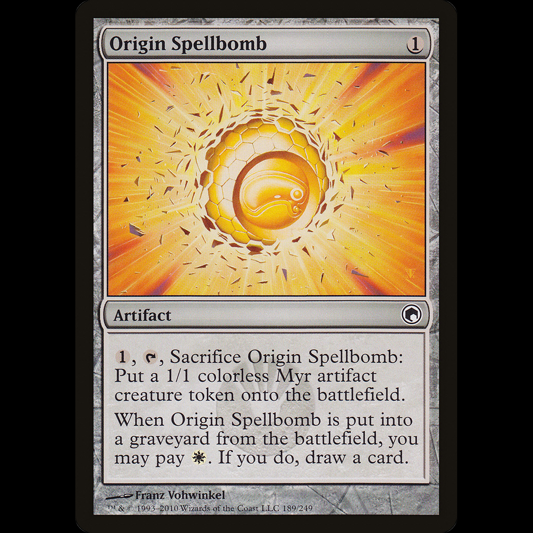 , , Sacrifice Origin Spellbomb: Create a 1/1 colorless Myr artifact creature token.
