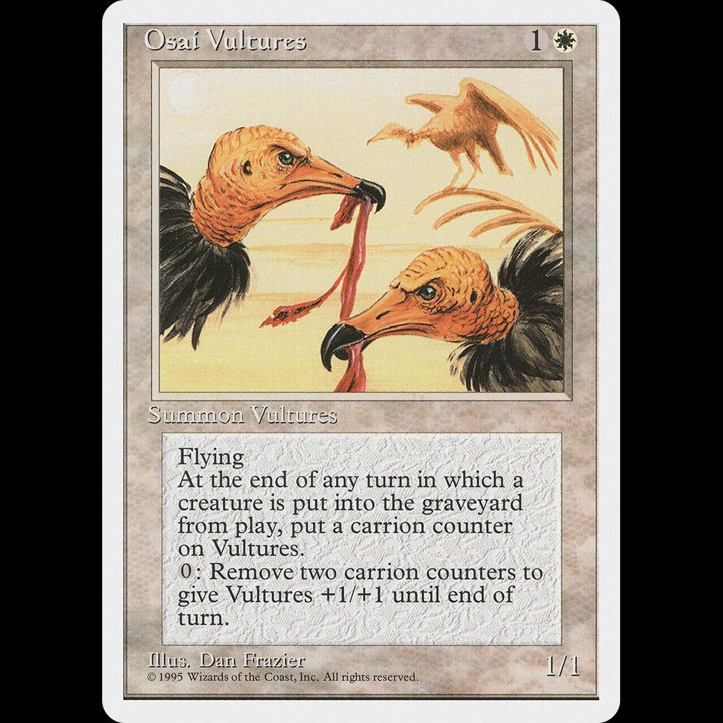 At the beginning of each end step, if a creature died this turn, put a carrion counter on Osai Vultures.
