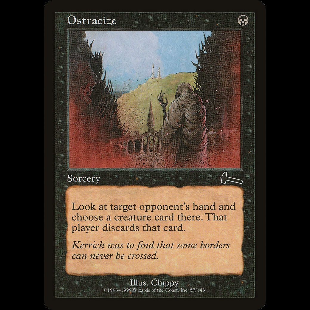 Target opponent reveals their hand. You choose a creature card from it. That player discards that card.